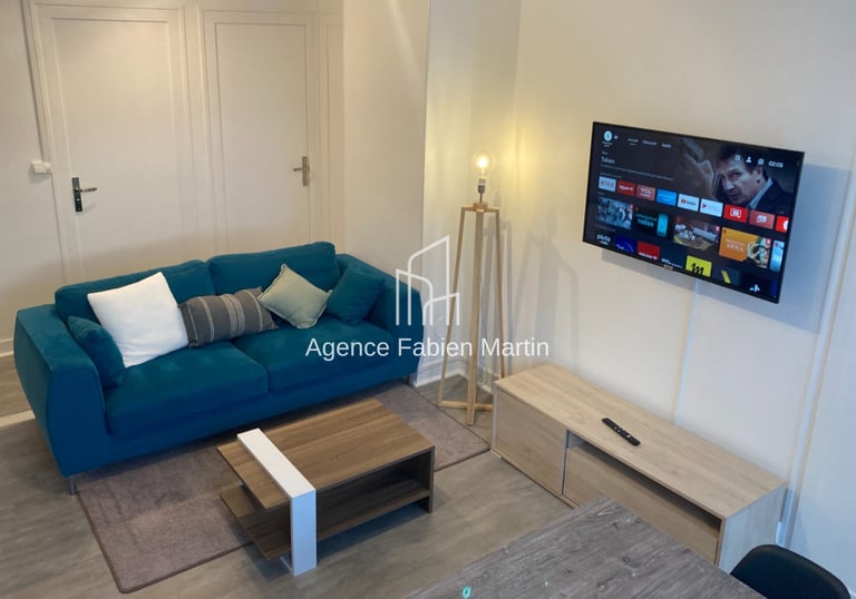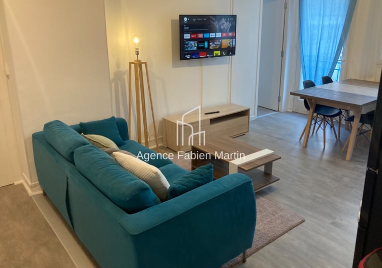 Appartement 5 pièces avec séjour cosy, TV, cuisine équipée et chambres avec bureau, situé à Périgueux.